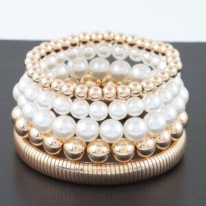 Elevate your jewelry collection with the Multi Pearl Beaded Bracelet, a timeless piece that perfectly blends classic elegance with modern style. Featuring a harmonious combination of polished gold-tone beads and lustrous faux pearls, this bracelet adds a refined touch to any ensemble. Its lightweight design ensures comfortable wear, making it ideal for both everyday looks and special occasions. Beautifully crafted for a sophisticated finish, this bracelet brings effortless charm and versatility to your accessory lineup.