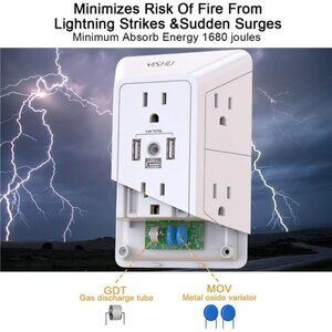 🧿【Reliable Surge Protector Circuit】: 2 level complementary Surge Protector Circuit which composed of MOV (metal oxide varistor), GDT (gas discharge tube), with minimum 1680J energy absorbing capacity, could protect your devices much more quickly and reliably than other brand's 1 level MOV(metal oxide varistor) Surge Protection Circuits.