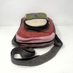 Multi Pocket Crossbody Bag Purse Made From Pure Hemp with embroidered flower