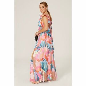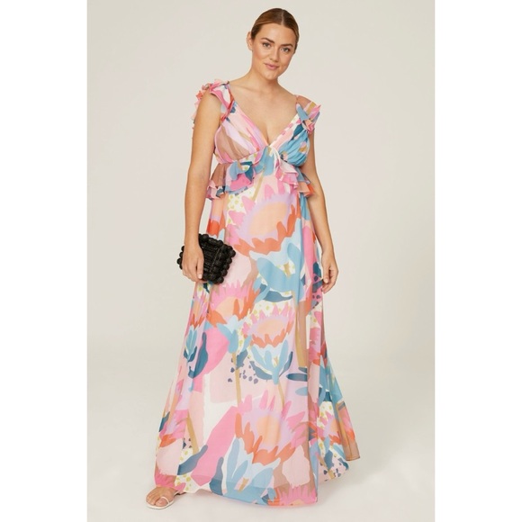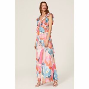 Multi Print Large Ruffle Maxi Dress