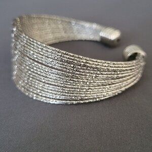 Multi Row Cuff Sparkly Textured Bracelet Silver Tone Metal Fits 6 1/4" Wrist