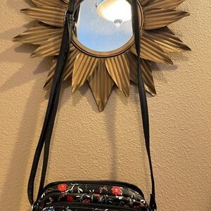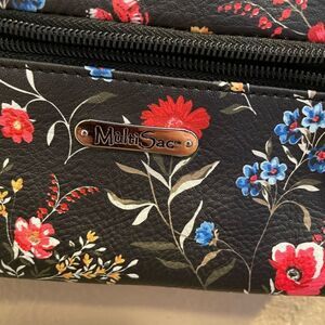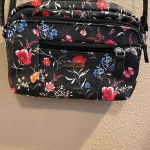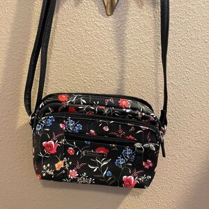 Excellent condition. Really beautiful print! Flowers and butterflies on a black background. Great for day trips or everyday use! Long adjustable strap! Multiple pockets. Super cute! Clean home!