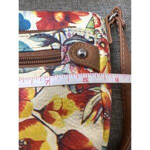 This vintage-inspired crossbody bag features a colorful floral design, zippered compartments for organization, and a convenient adjustable strap for comfort.