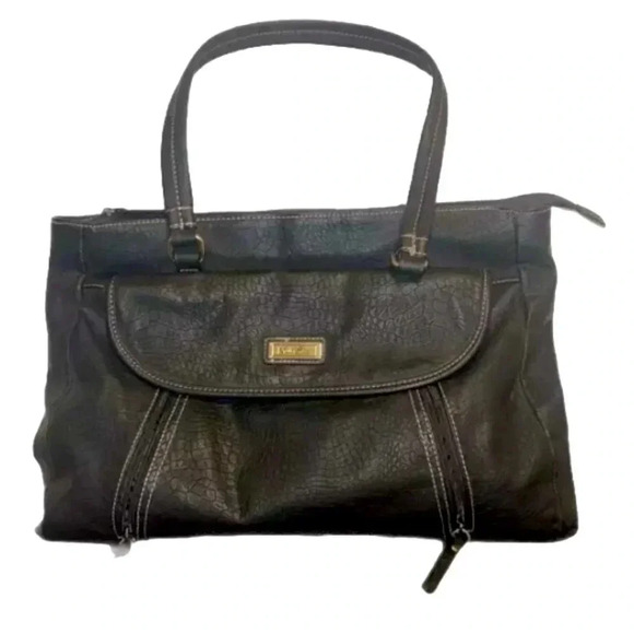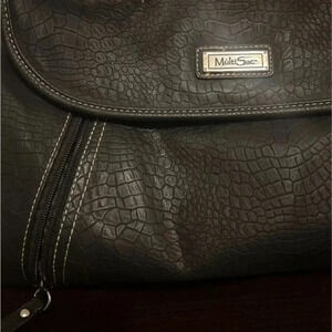 Multi Sac Large Black Pebbled Faux Leather Handbag Exterior Lots Of Pockets