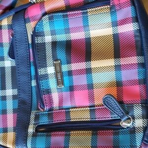 Multi Sac colorful plaid and navy backpack 9 pockets approx 12 X 11