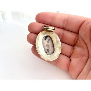 Multi Shade Pink Jasper Natural Stone Oval Sterling Silver 925 Vintage Pendant