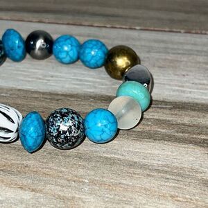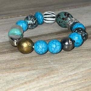 Multi Stone Bead Bracelet Women’s Blue And Silver Tone Simulated Stone Bohemian