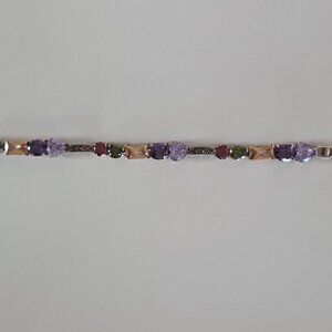 This is a multi stone bracelet.  Measures 7 inches long, beautiful sparkly stones and marcasite.  Great colors for Fall!