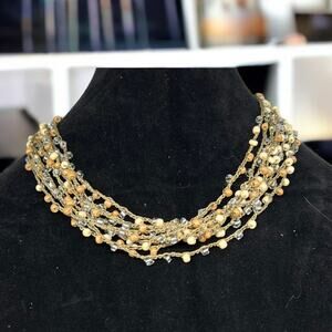 Multi Strand Beaded Choker Necklace Crochet Wire Cream Pearl Crystal Boho 23"