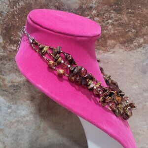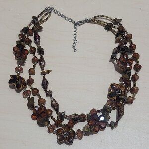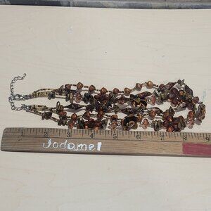 Multi Strand Beaded Necklace Brown Amber Bronze Beads