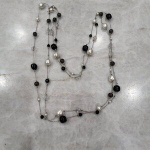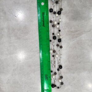 Multi Strand Black and Rhinestone Beads and Faux Pearl Necklace