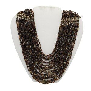 Multi Strand Brown Black Glass Seed Beaded Bib Necklace With Adjustable Chain