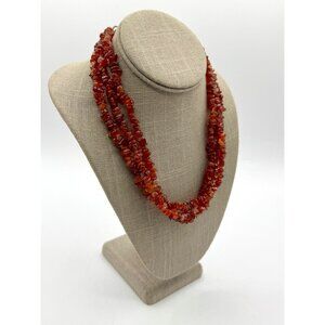 Multi Strand Carnelian Gemstone Chip Necklace With Sterling Shepherd's Hook Boho Fall