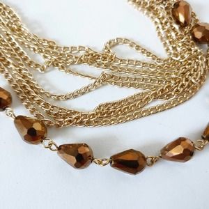 Multi Strand Fashion Gold Bronze Necklace + Earrings Set