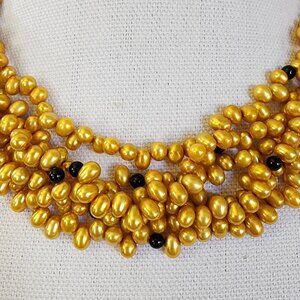 Multi Strand Freshwater Gold Pearl Necklace Choker 925 Sterling Silver Clasp