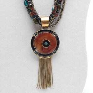 This intricately designed necklace by Chico's combines a multi-strand beaded arrangement with a bold tassel pendant. Its blend of textures and colors adds sophistication.