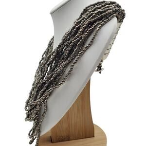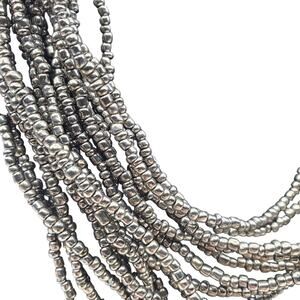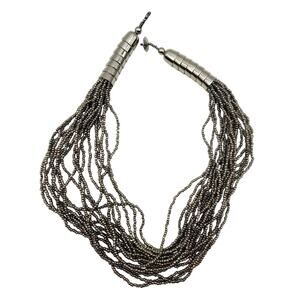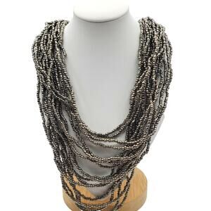 Multi Strand Gunmetal Gray Seed Bead Necklace Torsade Statement Layered Metallic