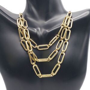 Multi Strand Layered Gold Tone Oval Link Three Chain Necklace Adjustable Length
