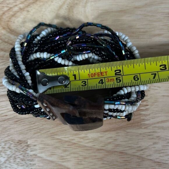 Multi Strand Seed Bead Bracelet, Vintage Wooden Hook Closure - Black, Oil Spill