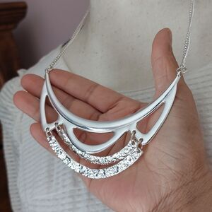 Multi Texture Hammered Smooth Silver Tone Bib Statement Necklace