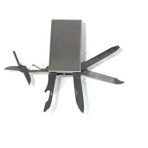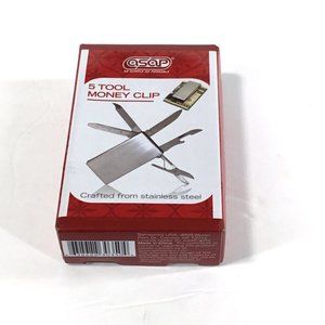 Multi-tool with money clip, bottle opener, small ruler, small knife, nail file and mini scissors