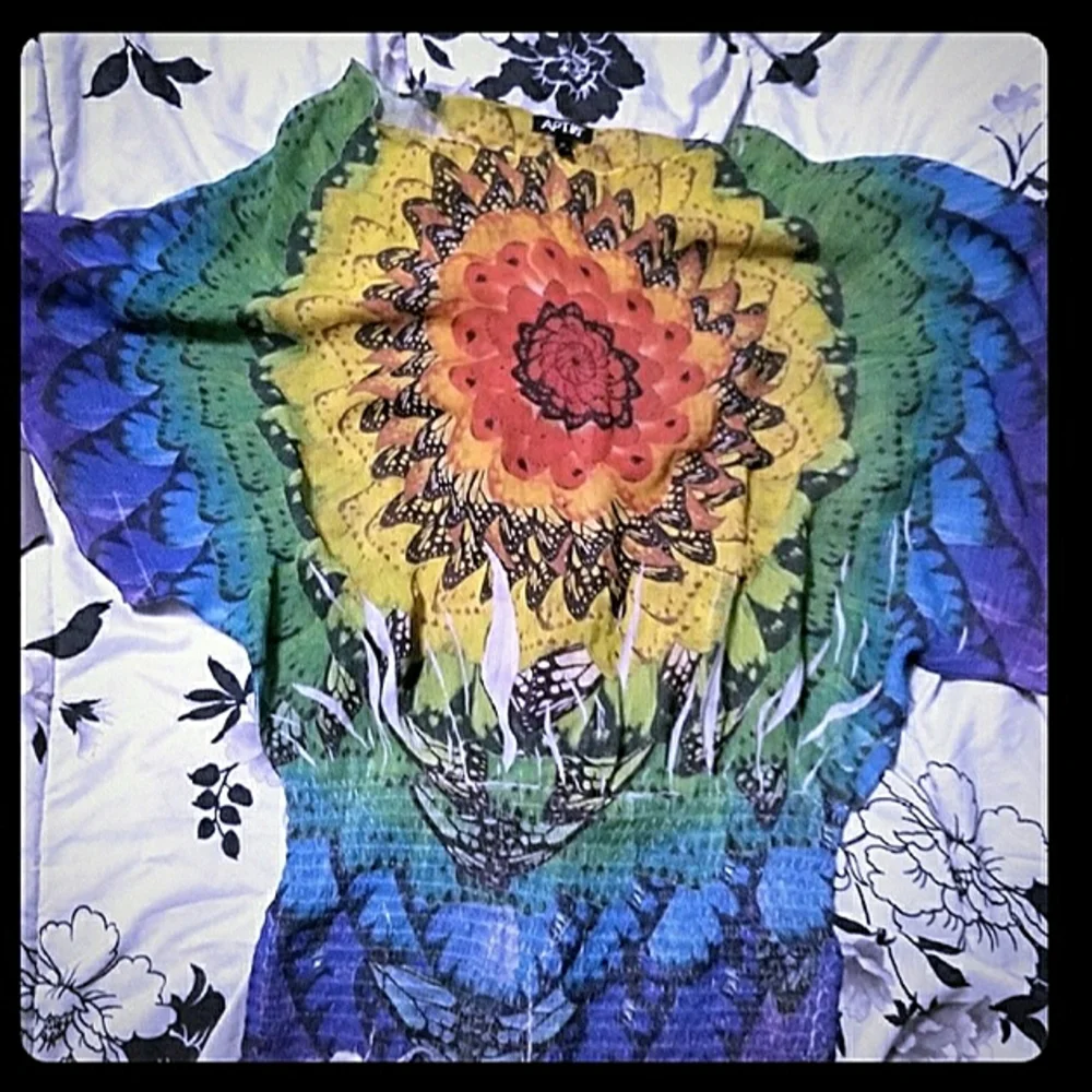 Light weight top boho hippie multicolor elastic stretch around hip area.