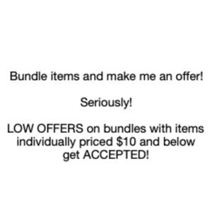 I am bulk uploading everything for a short period of time. If it is not purchased by August 2nd (Sunday) it will be deleted from Poshmark and donated to Goodwill. Bundles with items that are individually $10 and below get really good deals. Just trying to declutter!