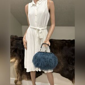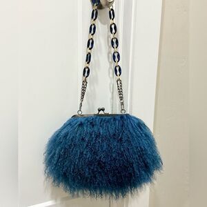 Multi Use Handmade Real Mongolian Lamb Fur Kisslock Clutch/Wristlet/Crossbody