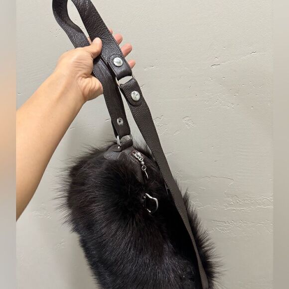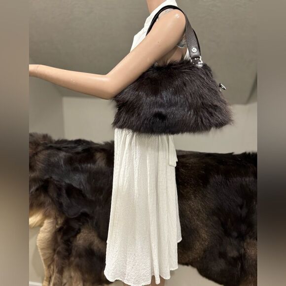 Chic design, great quality. This gorgeous real fur bag is handmade from genuine Asian fox fur ( tanuki fur ), with partly cowhide leather. Includes removable handle straps, and an adjustable leather strap for shoulder or crossbody use.