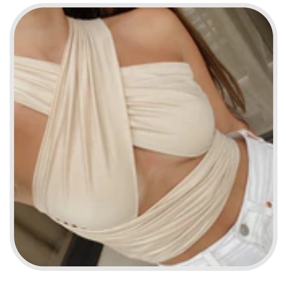Wrap top which can be worn numerous ways. This is brand new without tag and never worn. Cream color.