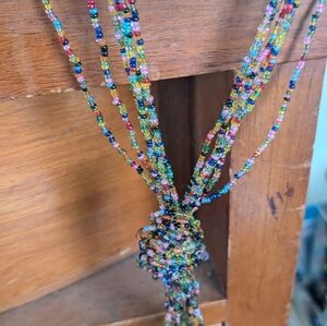 Colorful jewel tone glass beaded necklace is a versatile layering piece for fall.