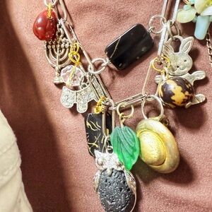 Multi charms layered necklace with lava rock and Jasper