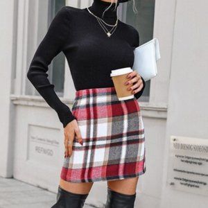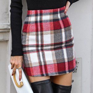 Multi color Plaid Print Bodycon mini Skirt red