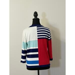 Add a pop of color to your wardrobe with this vibrant, multi-color striped cardigan! The 3/4 sleeves make it perfect for transitioning between seasons. Whether you're dressing up for a casual outing or layering for extra warmth, this cardigan is a versatile and stylish choice.
