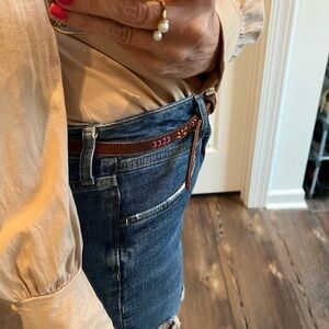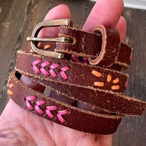 Multi color brown Genuine leather skinny belt fits from 32" up to 36"