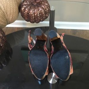 Multi color, cute, retro heels. Thick wood heel. Worn a couple times. 5 inch heel, but easier to walk in because of how thick it is. Will accept offers.