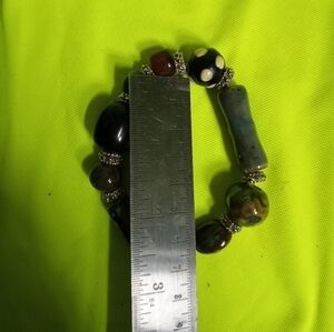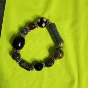 Multi color stretch beaded Bracelet clay beads silvertone accents
