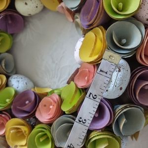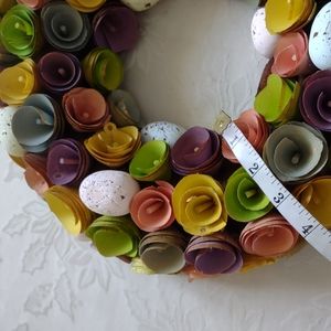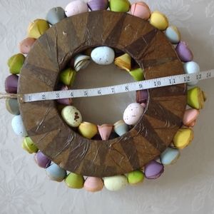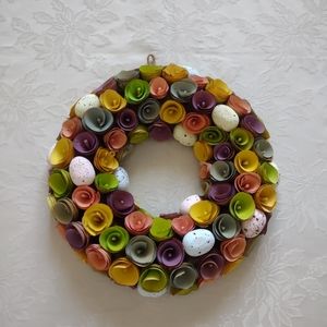 Multi color wreath wood flowers eggs easter