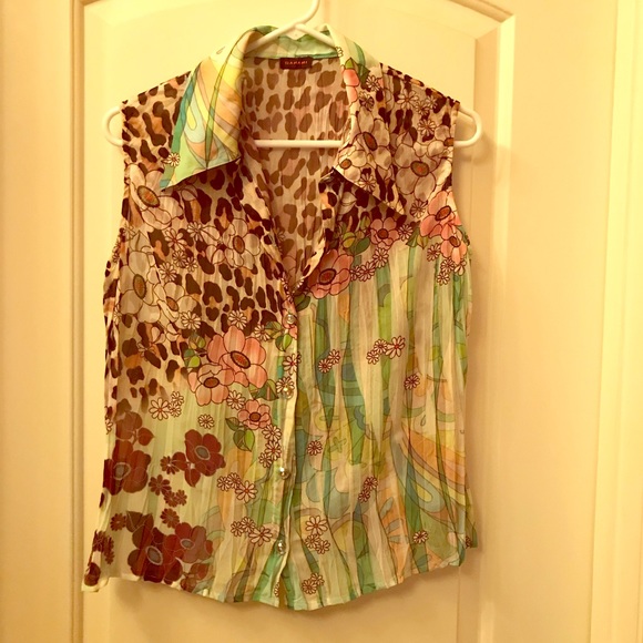 Rhinestone buttons crinkle blouse