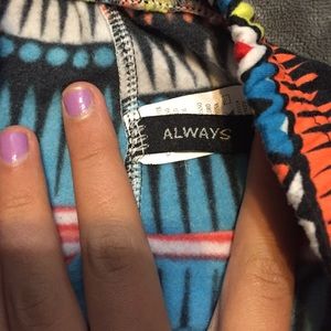 Purchased at a boutique, brand is ALWAYS. Fuzzy material inside of pants. The top of the pants are elastic band. Perfect condition! Worn once! One size