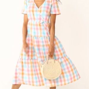Multi- colored Pastel Easter Checkered Surplice Tiered Midi Dress size XXL NWT