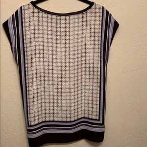 Black, navy, periwinkle, light blue, white in color. Super cute boxy polyester top.