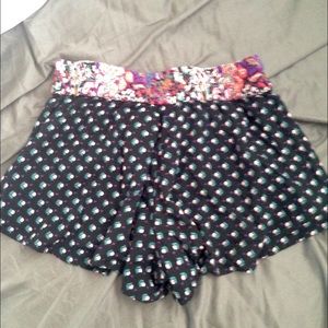 Multi colored, flowy shorts. I'm 5'1" and they're high waisted but not too high. It's super cute with a crop top. Second picture is the back. Elastic waistband so they're comfy and stretchy :) taking best offers
