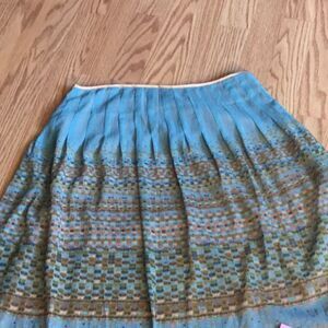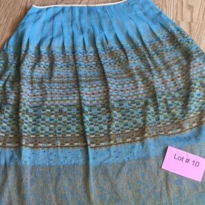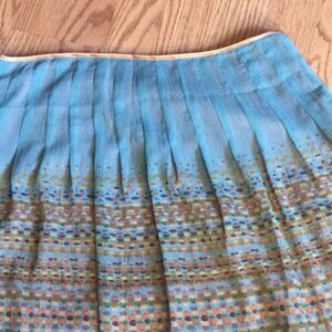 Lightweight sheer overlay in pretty multi color, gold lining, size zipper, pleated waist