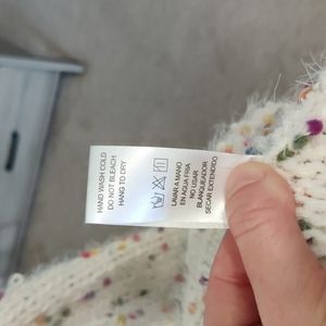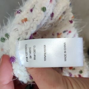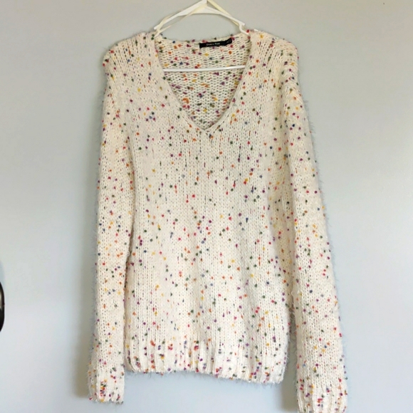 Doe and Rae cream colored with sweater with multi-colored confetti dots throughout. Very soft.