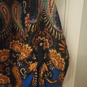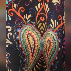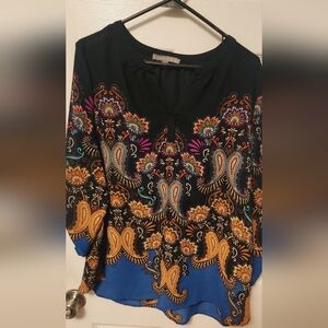 like new Valerie Steven's brand multi colored paisley blouse! Has three quarter sleeves with button to roll down to make long sleeve sz XL Navy hot pink yellow orange green are just some of the fantastic colors in this must have blouse