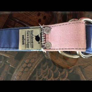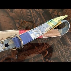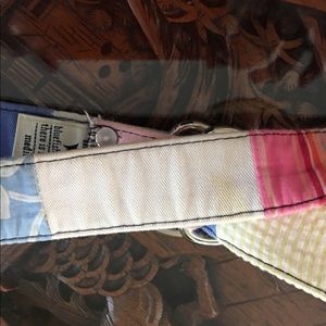 Great preppy belt mixing patterns, textures, fabrics, and colors. Some discoloration on the white patch as seen in picture.
