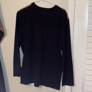 There are no rips tears or stains at all in the shirt looks perfectly new minus the tag. This shirt is made out of 90% acrylic and 10% polyester