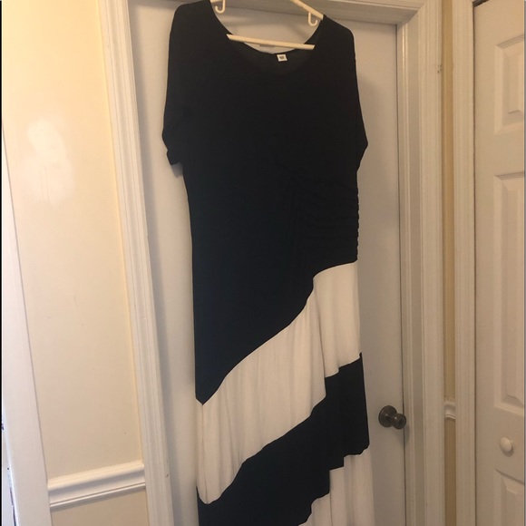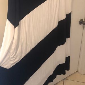 Black/ White short sleeve maxi dress. You can wear this dress any where! With flats , heels, or wedges. Very flattering to the tummy area. Very comfortable. No damages.