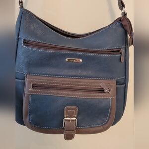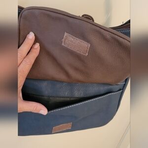 Multi sac flare crossbody bag in chocolate brown and indigo